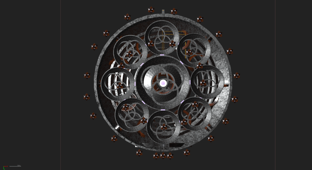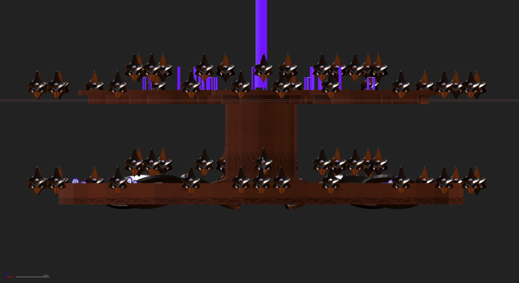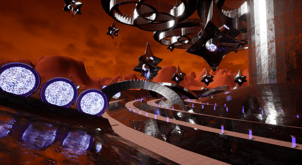 - The Crowds: I made these hovering star-shaped ships that held the cheering crowds watching the player. Whenever the player neared one of these ships, the crowd’s cheer would be louder. By strategically placing these ships around the maps, the crowds would seem to cheer louder when the player was in an area where they could do something cool or fun.