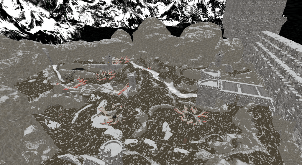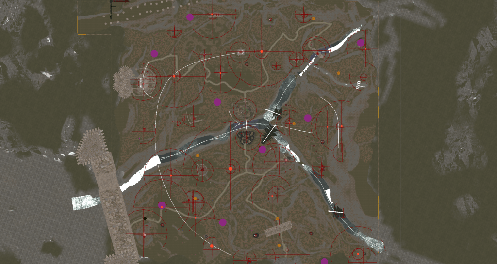 - For Talon’s Blade, I learned about this after I had already done the art pass, so I manually ran around the level, placing color-coded cylinders every 30 seconds to ensure I had a proper content distribution.