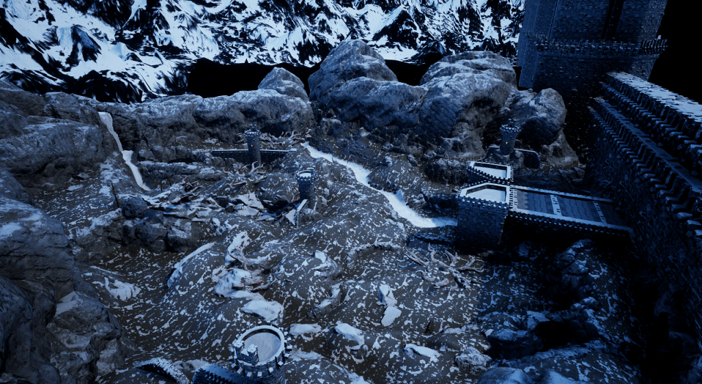 White boxing is a critical step and serves as the bones of my level design process. Laying out an environment in 3D space without any art assets allowed me to take in the space and dimension of an environment before committing to it by adding art and scripting. The iterative process of white boxing and paper design was crucial to the development of Talon’s Blade. During the creation of the fifth level, after exploring the level’s white box, I found that the flow and progression of the level were better if the player entered a dungeon after going through an open space rather than before.